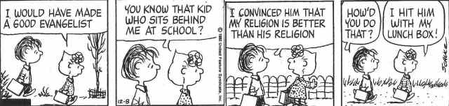 Komper, strikketøy og venner er noen av de beste tingene i livet akkurat nå. Og så tegneserier. Jeg elsker tegneserier! Jeg er stor fan av Tommy og Tigeren, og jeg oppdager stadig nye striper av gode, gamle Knøttene. Og mens jeg sitter og tenker på mine gode ting, lurer på jeg på om visse mennesker på et visst møte klarer å snakke sammen bedre enn dette: