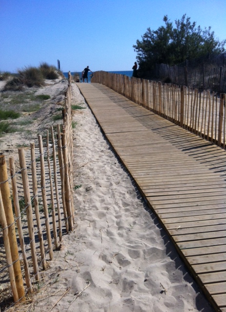 I går var siste dagen for eldstejenta her, og det var mye hun ville rekke. Hun og jeg startet med intervalltrening ganske tidlig på morgenen, og det var hardt, men fint. Så var det hjem og steke pannekaker som vi hadde laget røre til forrige kveld. I stedet for å kjøpe crepes som ikke cøliakeren kunne ha, lagde vi to rører hjemme. Dermed ble det pannekakefrokost for hele familien. Deretter delte vi oss igjen. Mannen og to av jentene dro innover i landet til et padlested, mens siste jente, Mathias og jeg dro med trikk til stranda. De andre rakk litt shopping også før vi møttes hjemme og dro sammen til byen for å spise moule frites. Jeg hadde undersøkt på forhånd om det var restauranter som hadde dette som spesialrett, og vi endte opp hos Chez Regis som fikk gode omtaler og hadde en fornuftig pris. Det var ekstra hyggelig at den hadde uteservering og lå på et lite torg, og med god smak og service var det en virkelig suksess.