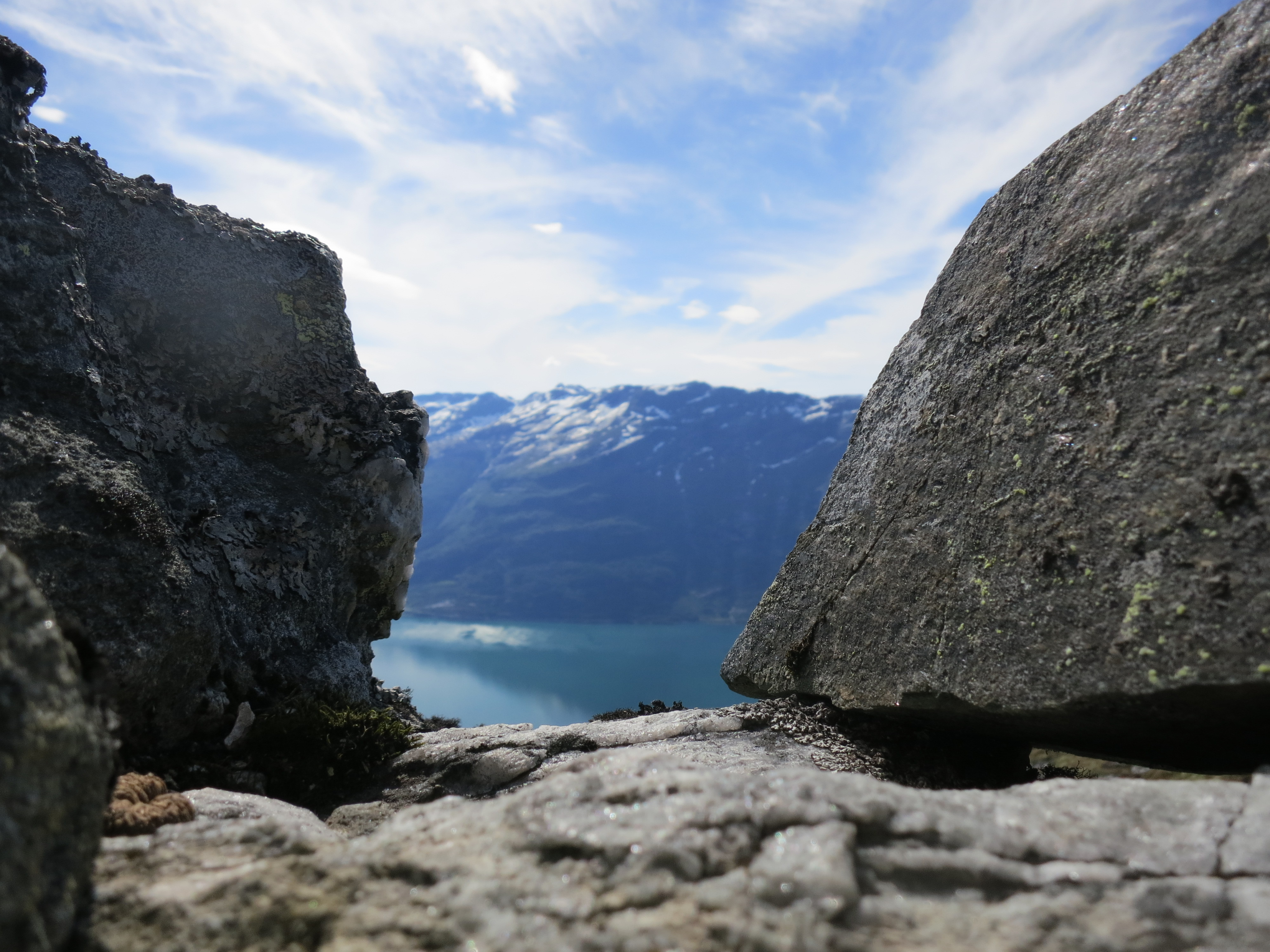 Å ha så flott vær på en tur hvor det er fantastisk utsikt nesten hele tiden, var helt magisk. Det var aldri bratt og skummelt langs selve stien, men det var flere utstikkere der man kunne gå ut mot kanten av fjellet og få gode bilder ned mot fjorden.