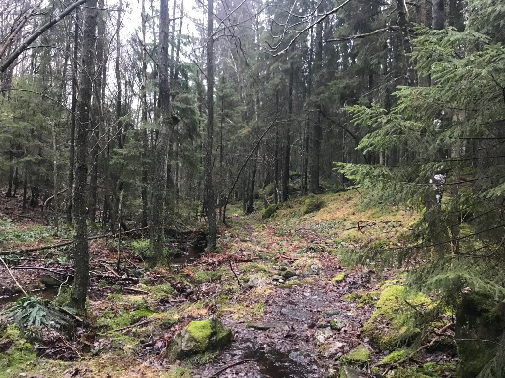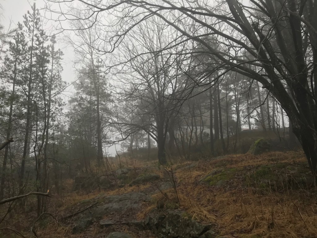 I dag ble det ny oppdagelsestur. Søndagen var grå og litt tåkete, men ikke verre enn at det fristet med en god tur i skauen.