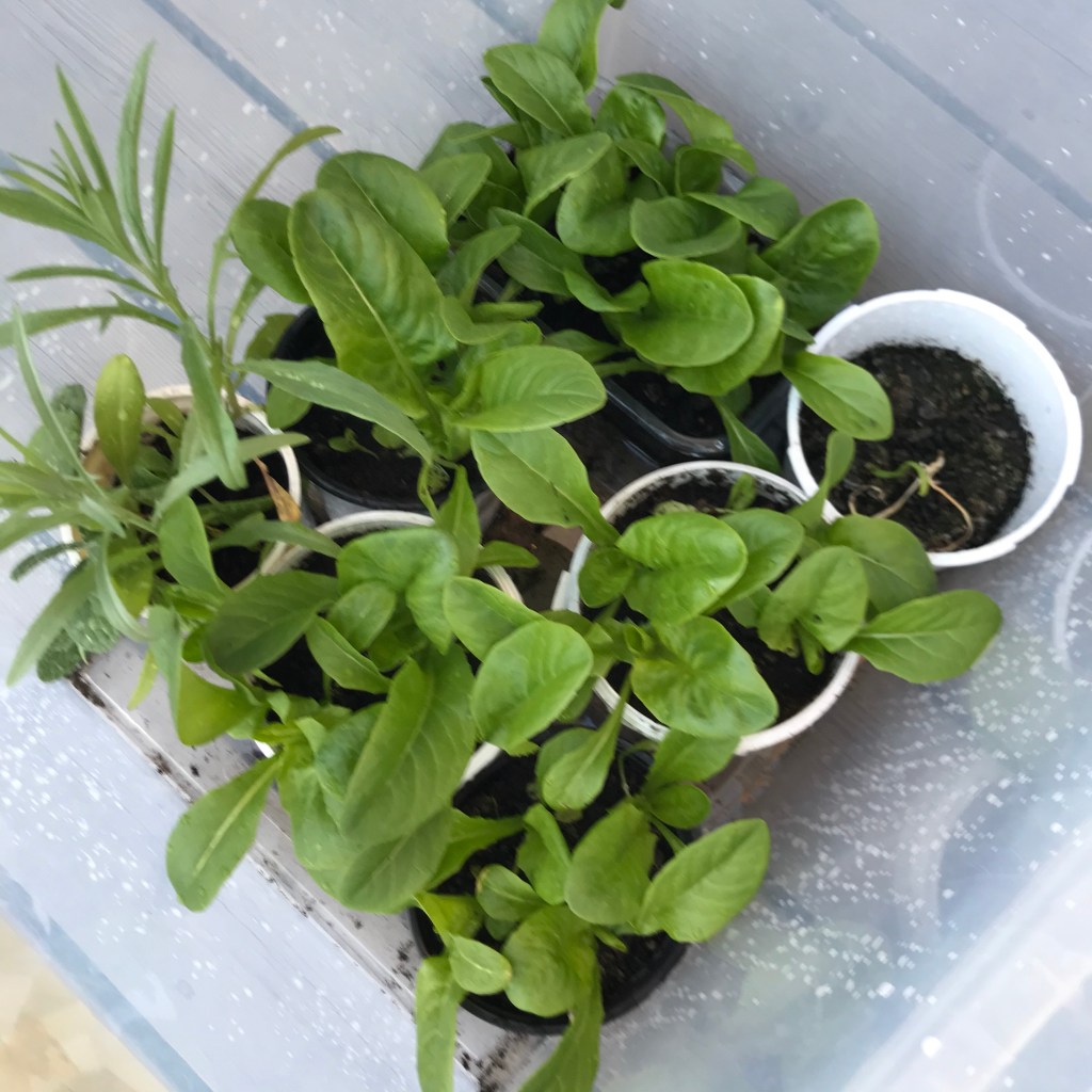 Denne våren har jeg for første gang lykkes med å få frem fine planter fra frø. Tidligere år har jeg sådd inne i et varmt hus uten ekstra lys, og det førte litt lange, tynne vekster som ga seg over før de rakk å bli til noe. I år sådde jeg utendørs i januar, og plasserte såddene i gjennomsiktige plastkasser, som små drivhus. Alle vekstene har overlevd sørlandsvinteren og -våren, og ingen har vokst for raskt. Tomatplantene jeg sådde innendørs 10. mars ble litt lange, men nå ser det ut til at de får så mye lys at de likevel klarer seg fint og begynner å få blomster.