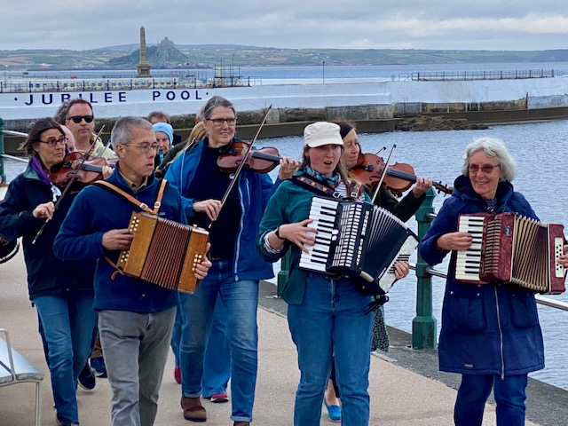 På kvelden ruslet vi langs den fine havnepromenaden, og rett imot oss kom en god gjeng musikere som sang og spilte lystig folkemusikk. Vi var også bortom og så på Jubilee pool, et stort saltvannsbasseng som brukte vanlig sjøvann i bassenget som ble oppvarmet deler av året.