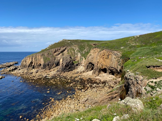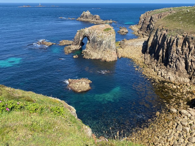 Vandreturen videre herfra gikk på ganske smaler stier, og vi møtte mange mennesker på vei fra Porthcurno der vi var på vei til, så vi stoppet stadig opp og slapp hverandre forbi. Denne dagen snakket min mann og jeg om hvor forskjellig landskapet så ut fra ulike perspektiver. Så man seg tilbake, fikk man en helt annen følelse enn når man gikk og så fremover. Ikke lenge etter at vi hadde reflektert noe over dette, kom noen venninner gående på stien, og den ene av dem fortalte ivrig til de andre om en felles venns annerledes perspektiv, og hvor forskjellig dette ga seg utslag. Da vi litt senere gikk forbi Minack Theatre og gikk ned mot Porthcurno Beach, stod det flere voksne og malte bilder og de hadde også forskjellige perspektiv. Ordet perspektiv kommer fra latin «perspicere» og betyr «se gjennom» eller «se tydelig». Dagen ble en øvelse i ulike perspektiv.