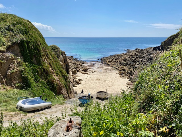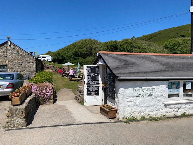 En av turens høydepunkt foruten naturopplevelsene, var for meg å komme til den bittelille landsbyen Porthgwarra med den lille stranda, noen få båter og verdens koseligste cafe hvor de hadde nydelige hjemmelagede kaker og ordentlig god kaffe. Her satt vi ute i en hage under parasoller og bare slappet av og nøt stemningen, maten, pausen og omgivelsene.