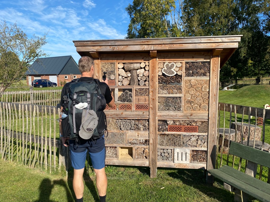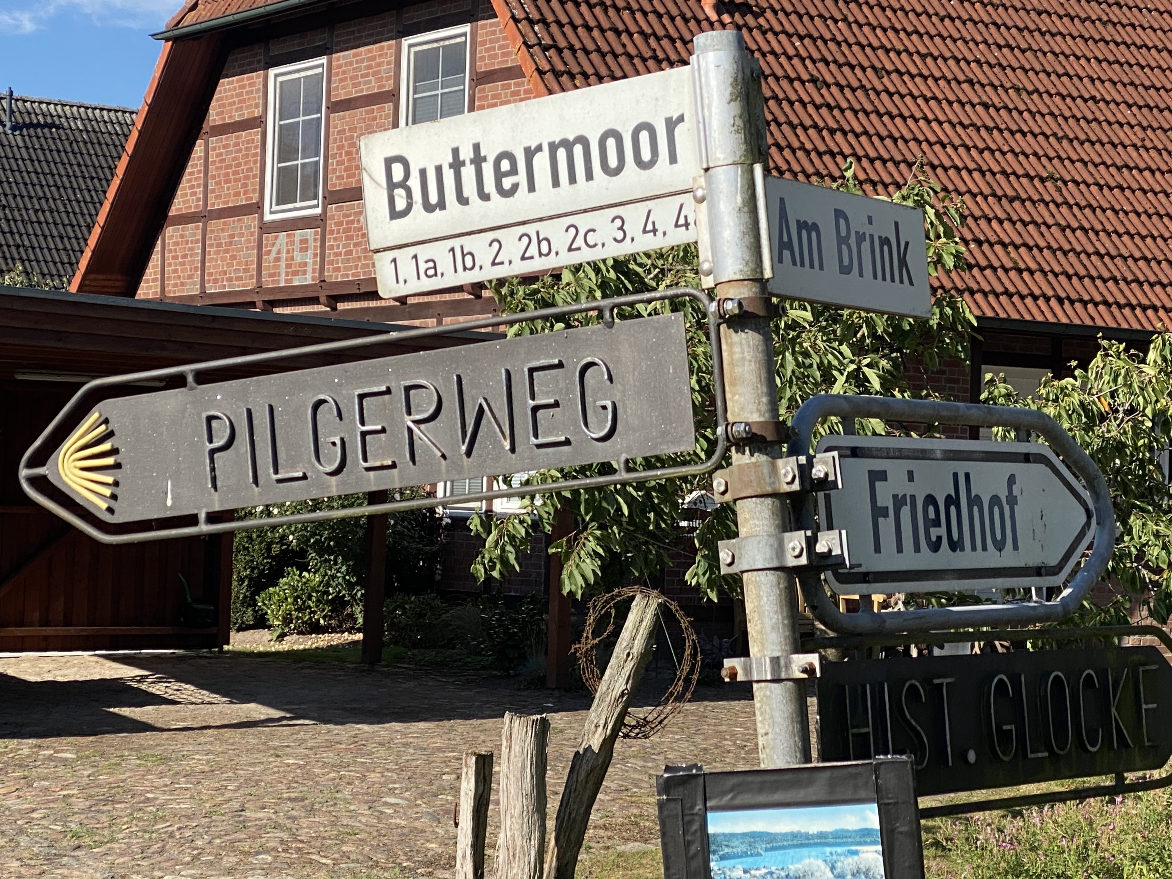 Vi kom – endelig – til Heeslingen. Vi hadde gått uten å se et menneske i kilometer etter kilometer, og slettene virket noen ganger endeløse. I Heeslingen var det en butikk, og vi helte innpå iskaffe og saft og hadde en god pause. Vi så etter en cafe som skulle være der, men vi orket ikke å gå så mange metrene ekstra for å lete helhjertet etter den, så pausen ble bare ute på et steingjerde utenfor butikken. Noen veps holdt oss med selskap.