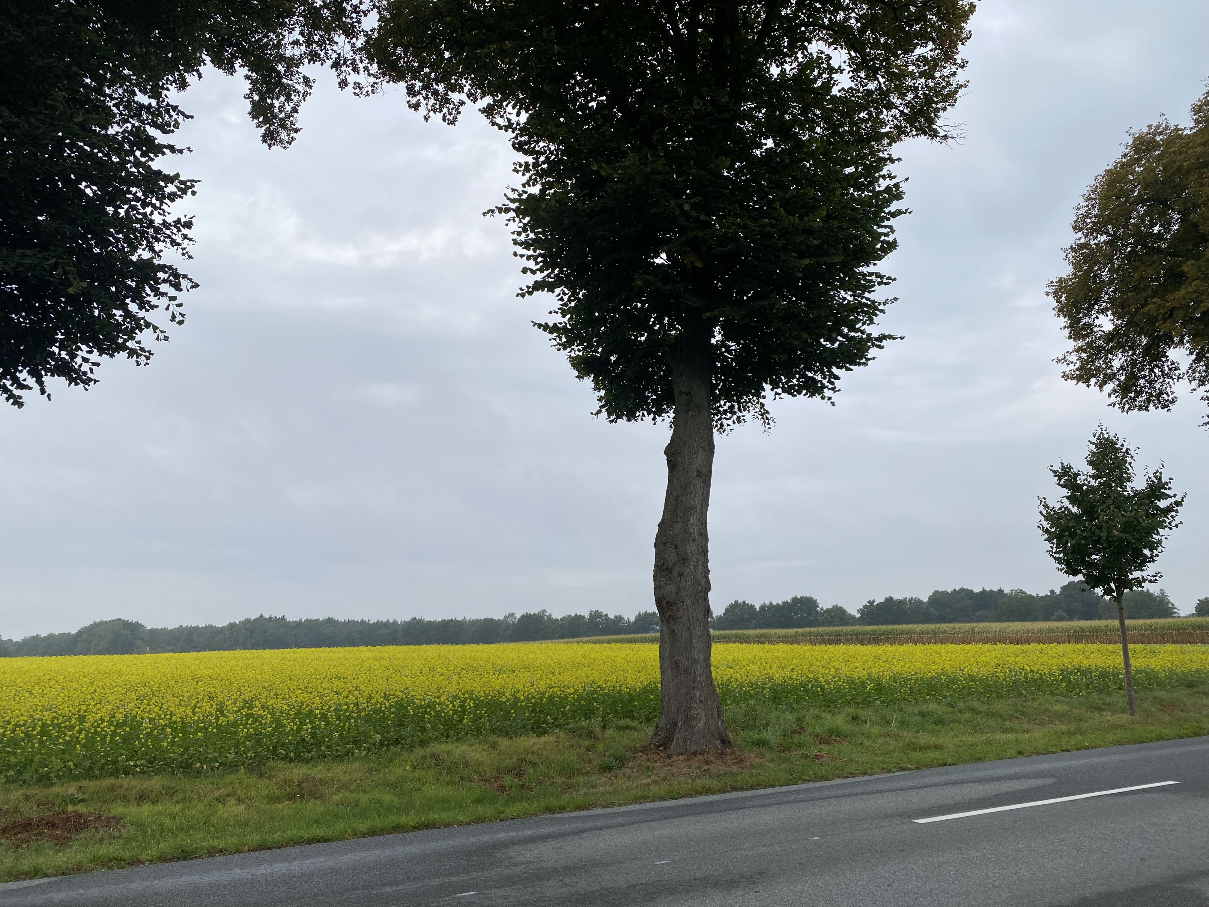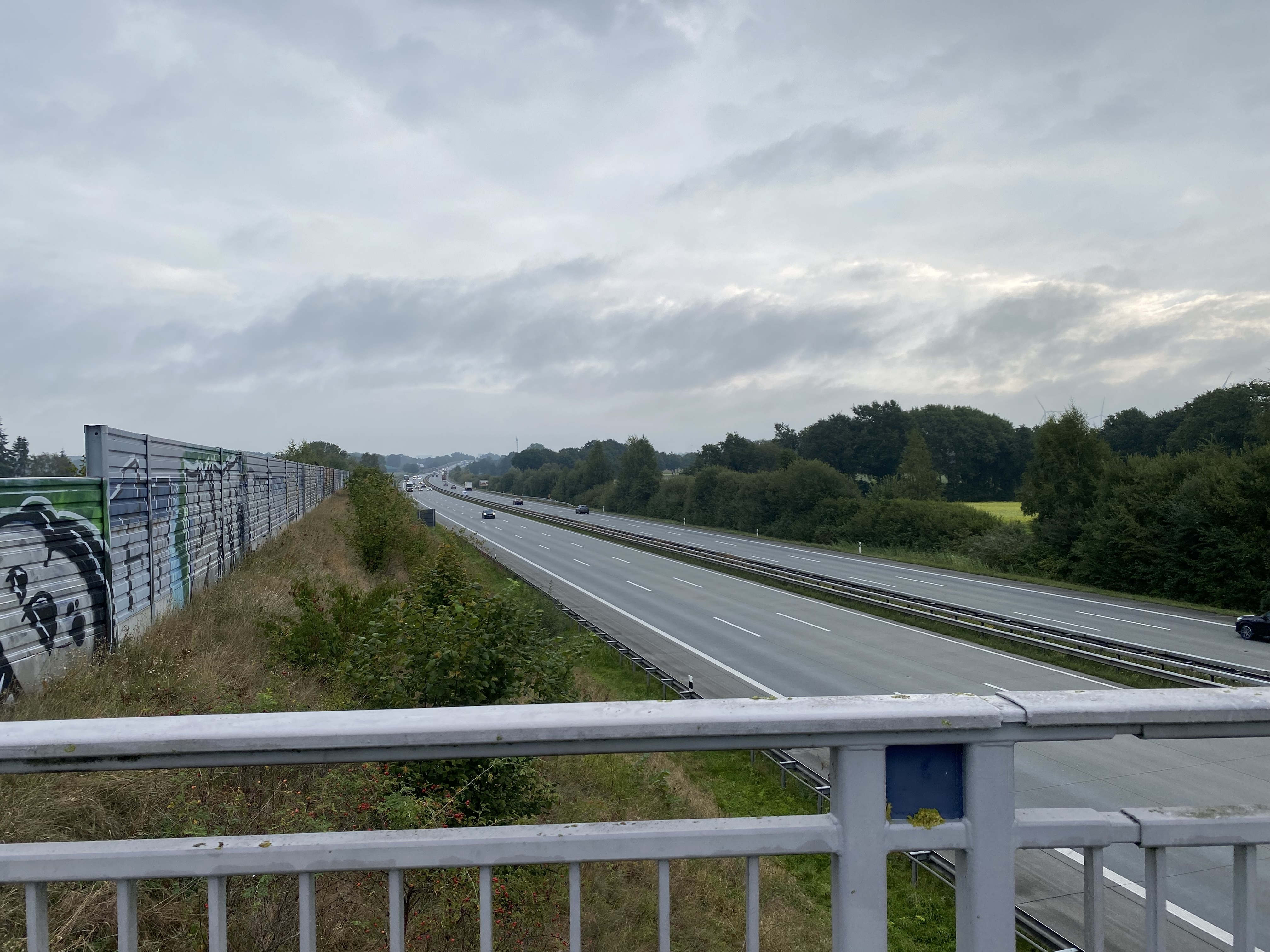 Vi vandret ut av landsbyen og kom straks til autobahn A1 mellom Hamburg og Bremen. Så underlig å rusle rolig over denne veien som vi så mange ganger har kjørt på med bilen i god fart, full av barn og baggasje.