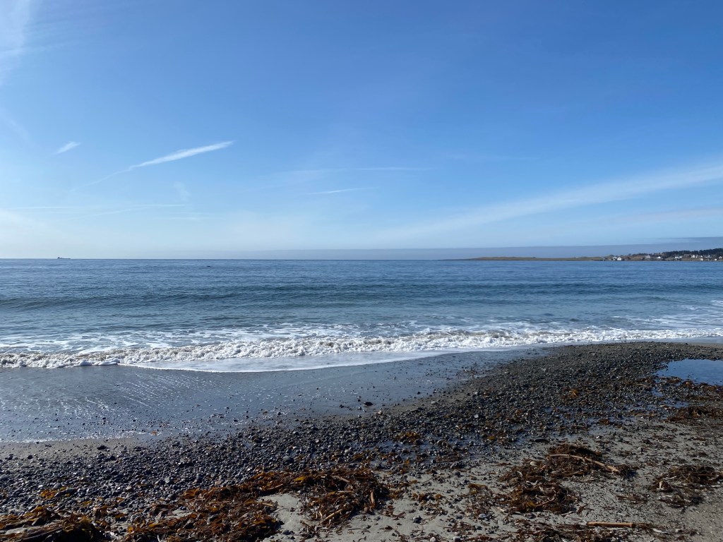 Selv om det ikke var vind, var det kraft i bølgene, og på vei tilbake igjen, måtte jeg passe på å gå langt nok bort fra fjæra, da vannet var i ferd med å stige.
